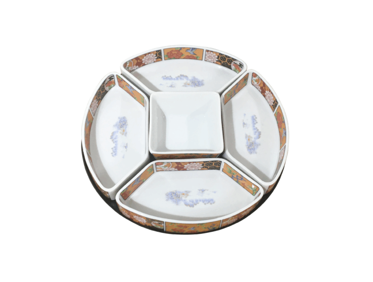 特にアジア料理店で人気の回転式のトレイと陶器のセットです。